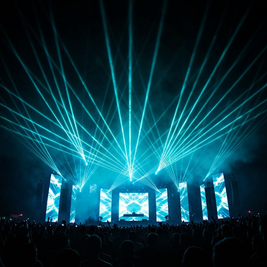 Full-scale laser systems for the world's largest festivals. Multi-zone coverage, audience scanning, and sky-beam arrays that define the skyline.